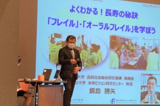 2022年度は東京大学高齢社会総合研究機構 機構長であり東京大学未来ビジョン研究センター教授の飯島 勝矢先生を講師にお迎えして「人生100年時代を元気で乗り切るために~講師と一緒にフレイルチェックをしてみましょう~」と題して講演会を行いました。(主催:西区高齢・障害支援課、共催:西区歯科医師会)